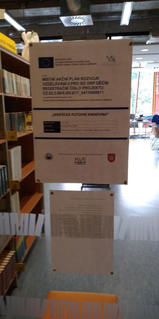 Slavnostní zahájení „Mapácké putovní knihovny“ s cílem seznámit ředitele a pedagogy základních škol v území SO ORP Děčín s realizací aktivity, která vznikla v prostorách Městské knihovny Děčín. Pro „Mapáckou putovní knihovnu“ byla zřízena zvláštní sekce obsahující atraktivní knižní tituly, které vybrala pracovní skupina pro čtenářskou gramotnost ve spolupráci s Městskou knihovnou Děčín a jejich pořízení bylo financováno z projektu MAP II pro SO ORP Děčín. Cílem této aktivity je seznámit žáky (pedagogy) v rámci čtenářských besed s pořízenými tituly, které si budou moci na dobu určitou do školy zapůjčit.