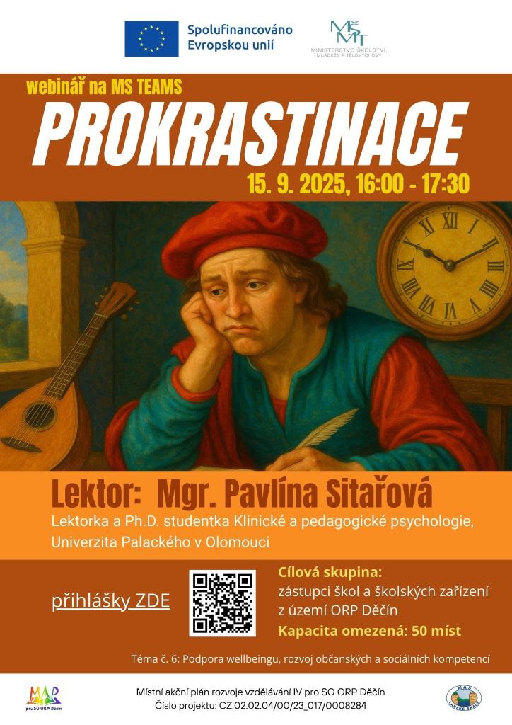 Financování: Účast na webináři je pro zástupce z území SO ORP Děčín zdarma, náklady jsou hrazeny z projektu MAP IV pro SO ORP Děčín.